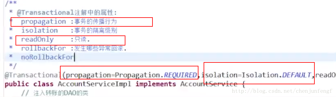 - 定义事务的隔离级别、传播行为、是否超时、是否只读等