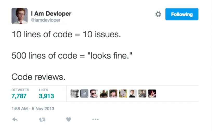 代码评审,来自于 Twitter @iamdeveloper 与 缺陷密度 vs LoC,来自于 Cisco 研究案例。