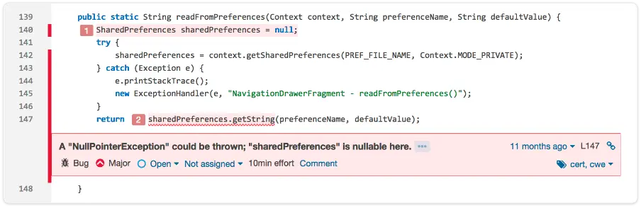 在 SonarQube 中发现问题,图片来自于 SonarQube 站点