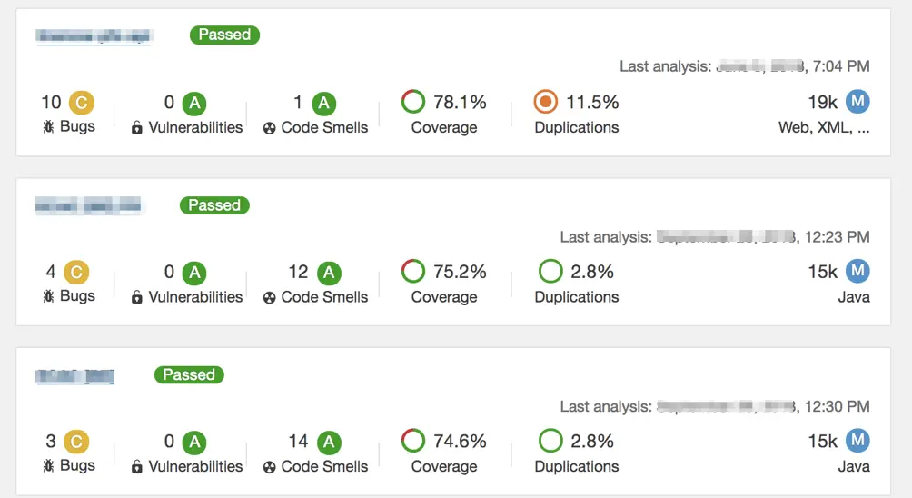 - xxx 次问题:发现的 bug,漏洞和 code smells 的数量