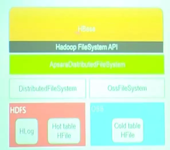 对于在阿里云上使用OSS作为HBase的底层存储的形式,其实现在的Hadoop 社区已经实现了一个叫NativeFileSystem的类,它继承至FileSystem,我们可以把FileSystem的实现类在配置里边替换掉,这样数据读写就可以直接转发到OSS上。