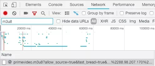 对于HLS,我们通常是在网络检查器中查找.m3u8文件;而对于DASH,我们要查找.mpd请求,或者有时只查找.xml请求。幸运的是,该这种情况下, Amazon Prime似乎正在为它们的流使用MPEG DASH和更传统的.mpd文件扩展名。