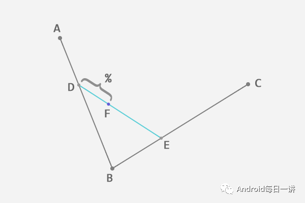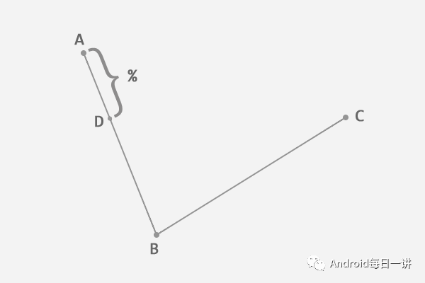 A到D的距离和A到B的距离记百分比 P = AD : AB,
