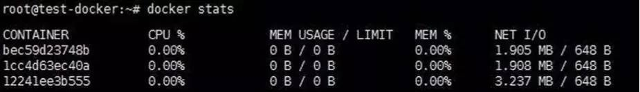 docker stats 这一方法比较简单,但是数据并不全面,我们可以看到如下效果。