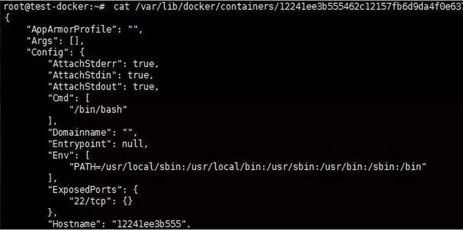 通过如下容器目录下的配置文件,我们可以获取到容器的详情,其中包含的 Image即为容器所采用的镜像名称。