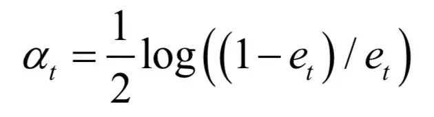 计算弱分类器的权重: