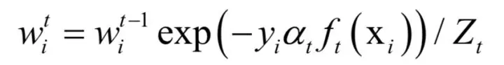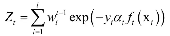 其中 为归一化因子,它是所有样本的权重之和: