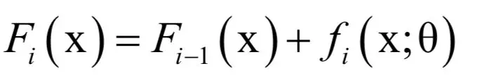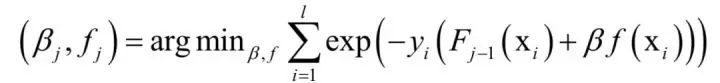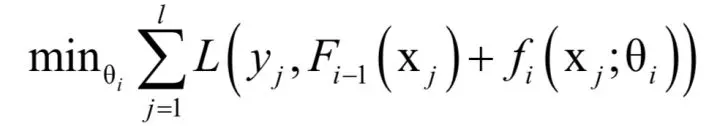 其中θi为弱学习器的参数。在第i次迭代时,确定当前弱学习器的参数,然后得到新的模型: