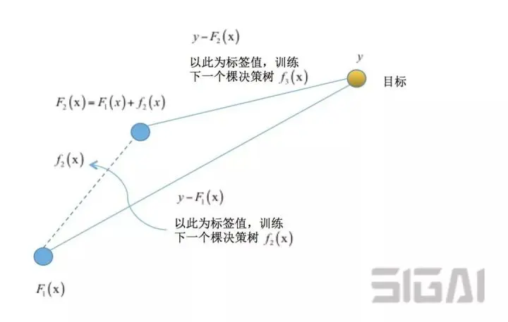 损失函数对强学习器求导,得到标签值为