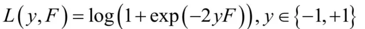 广义加性模型没有限定损失函数的具体类型,离散型和实数型AdaBoost采用的是指数损失函数。如果把logistic回归的损失函数应用于此模型,可以得到LogitBoost的损失函数: