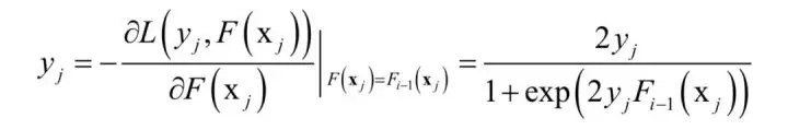 其中l为训练样本数。这里采样了逐步求精的思想,类似于打高尔夫球,先粗略的打一杆,然后在之前的基础上逐步靠近球洞。具体的思路类似于梯度下降法,将强学习器的输出值看做一个变量,损失函数L对其求导,将已经求得的强学习器的输出值