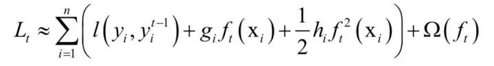 XGBoost-显式正则化,泰勒展开到二阶XGBoost[16]是对梯度提升算法的改进。XGBoost对损失函数进行了改进,由两部分构成,第一部分为梯度提升算法的损失函数,第二部分为正则化项