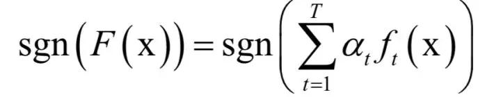 其中x是输入向量,F(x)是强分类器, 是弱分类器,