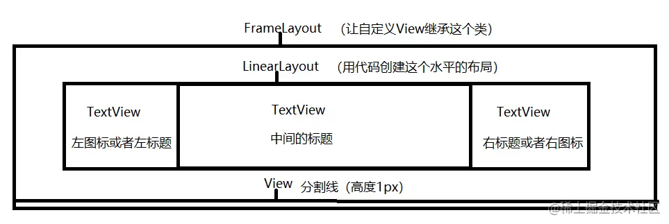 这个自定义组合控件的写法是使用布局填充器(LayoutInflater)初始化XML布局