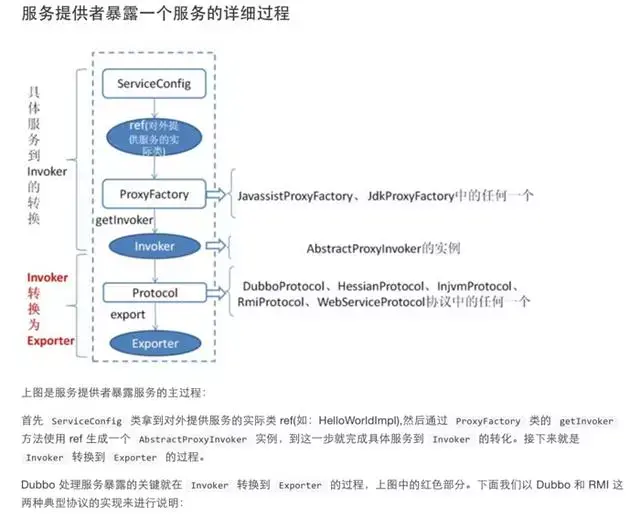 关于这个过程的实现细节可以参考Dubbo官方文档->实现细节->远程调用细节->服务提供者暴露一个服务的详细过程。截图如下: