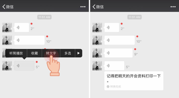在工作中一定出现过这样的场景,手头尚且有一大堆的工作正在等待处理,而此时老板在微信群中通过语音消息发布了一连串的任务,你想将其记下以便稍后再处理这些任务,但你此时必须打断手中的工作,一条一条地把语音听完,并且另外在一个地方记下。而如果此时老板发的是文字消息,那么只需简单地一截屏,就可以将这些事情记录下来,而无需打断手中正在进行着的工作。