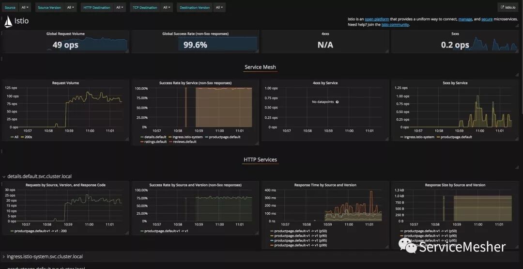 Istio Dashboard(使用Grafana Istio附加组件)显示微服务指标(图像链接)