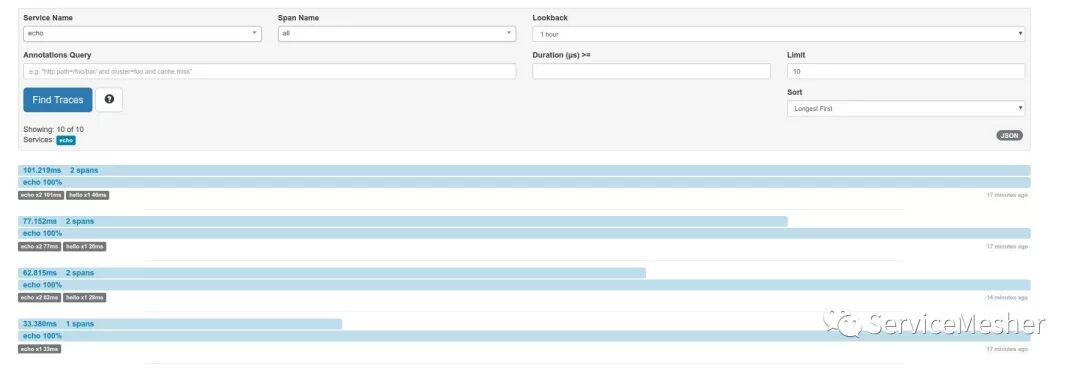 此外,由于Istio控制服务的所有入口和出口流量,因此可以使用Zipkin等工具捕获和显示复杂的微服务链路跟踪。