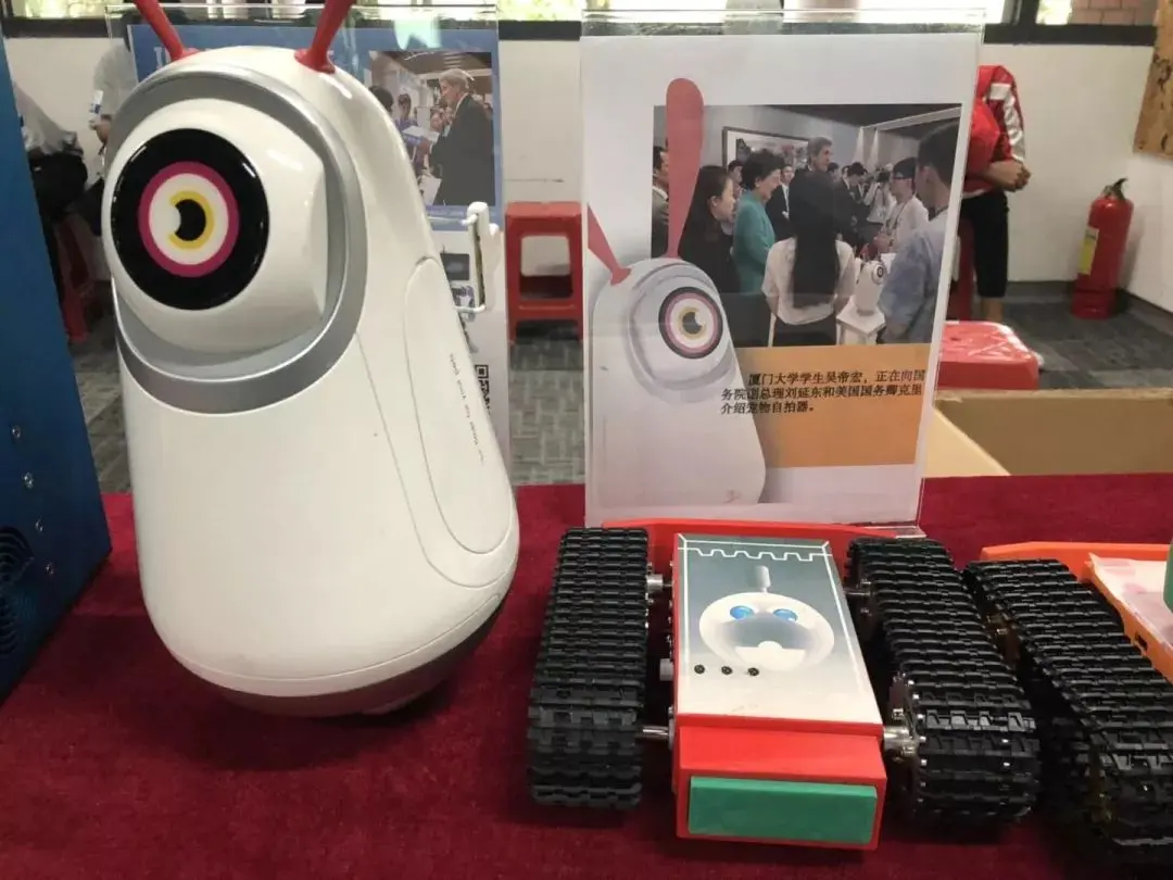 那么这款专门为宠物设计的自拍器一定能够满足你。这款产品斩获了2015年的中美创客大赛二等奖,连时任美国国务卿克里都忍不住用它给自己拍了张自拍。为了能让自拍器的外形吸引住猫咪、让自拍器既有效吸引猫咪互动,又防止被猫扑倒,设计团队可是绞尽了脑汁,终于打造出了这款获得了克里的“点赞”的产品。