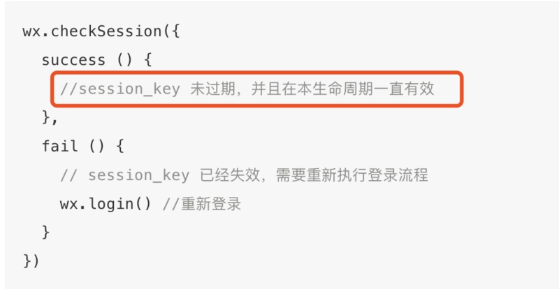 - 服务端不能直接校验session_key的有效性而是通过调用接口发现错误了才知道失效了,这是被动的