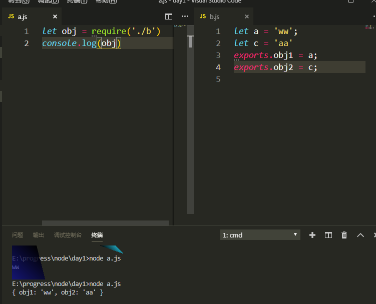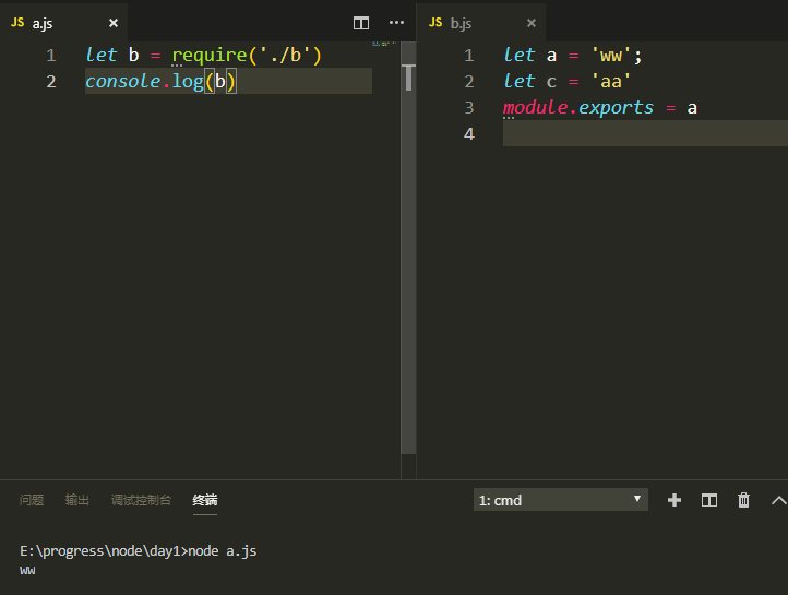 // 这里解释下 2和3的区别,就是当文件夹里面套了很多层,2就不行了,3才能准确定位该工作进程目录2、暴露出去接口 两种方式 module.exports 或者 exports
