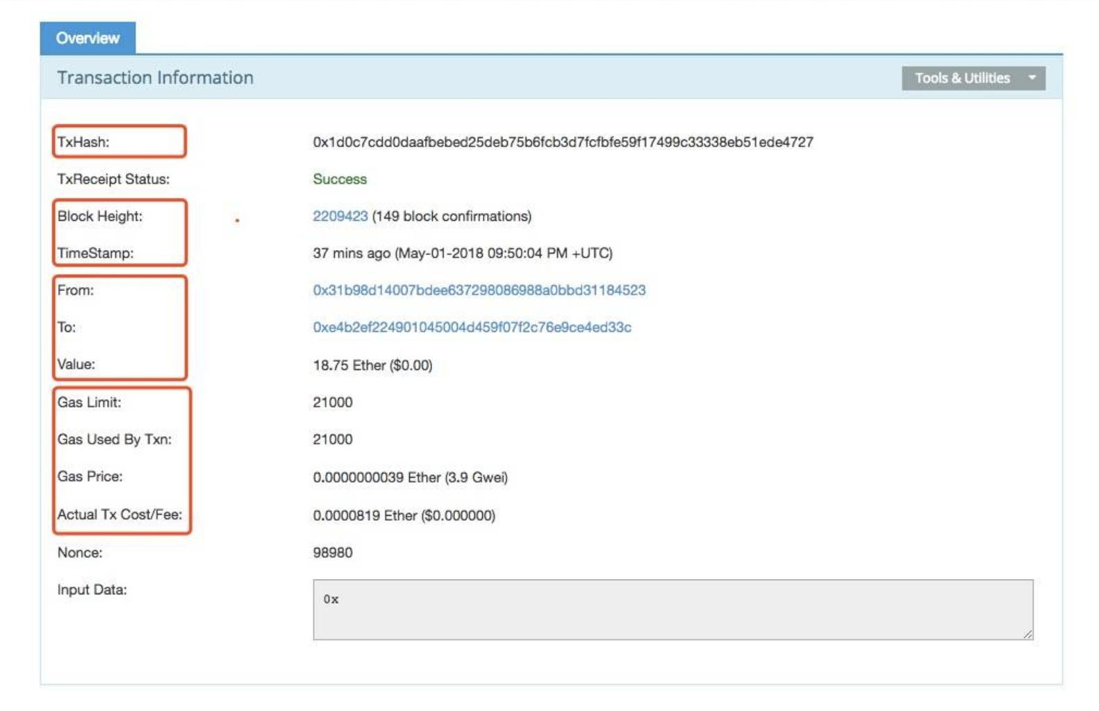 - Gas Price 表示汽油的价格是 0.0000000039 Ether,或者 3.9 Gwei
