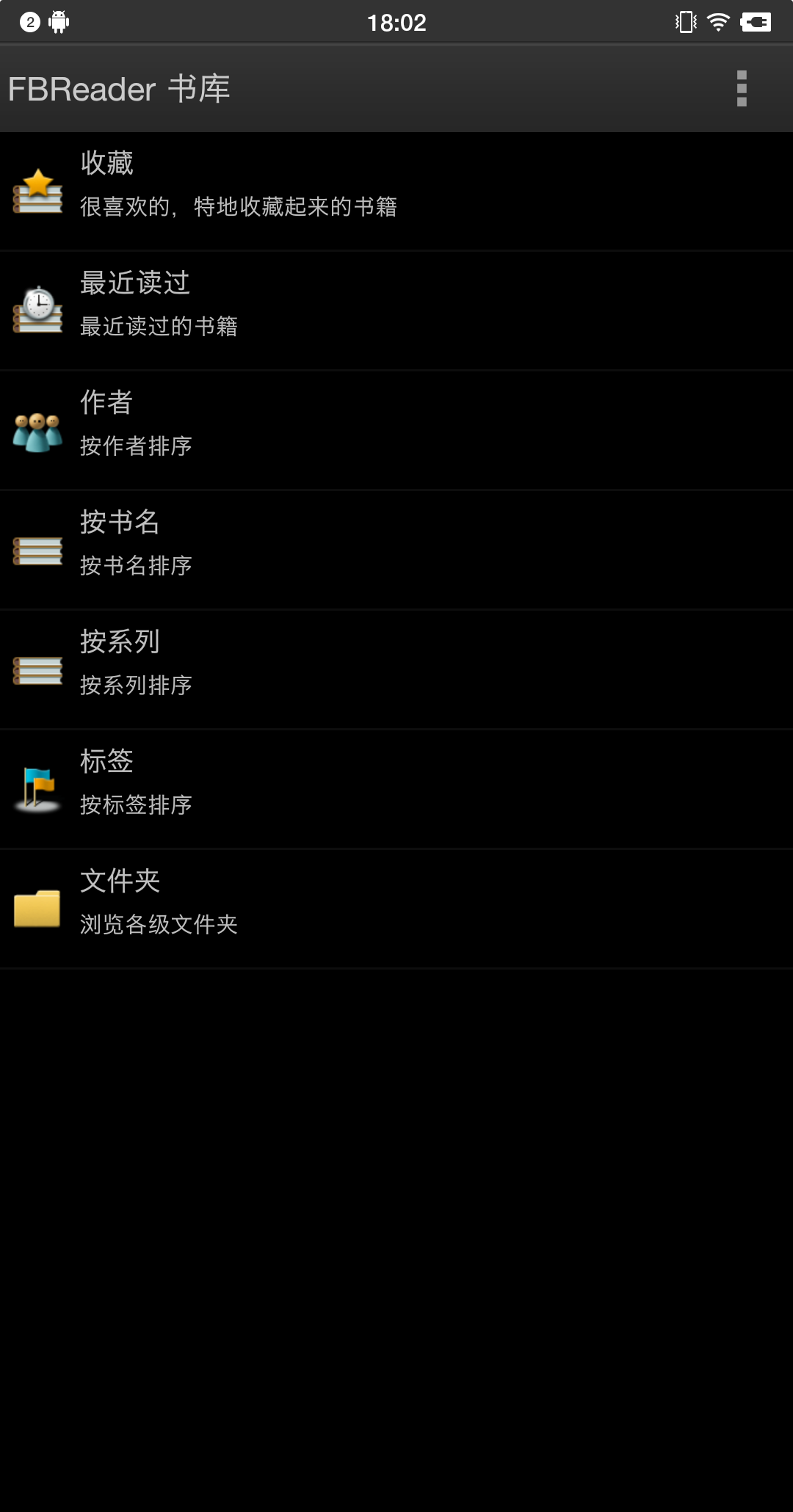 通过上一篇分析,我们已经知道如何响应并打开菜单,而且菜单中第一项是打开本地书柜,这一篇我们就以此为入口,去探究FBReader的书柜是怎么实现,以及是如何分辨一本书并且能打开一本书的。
