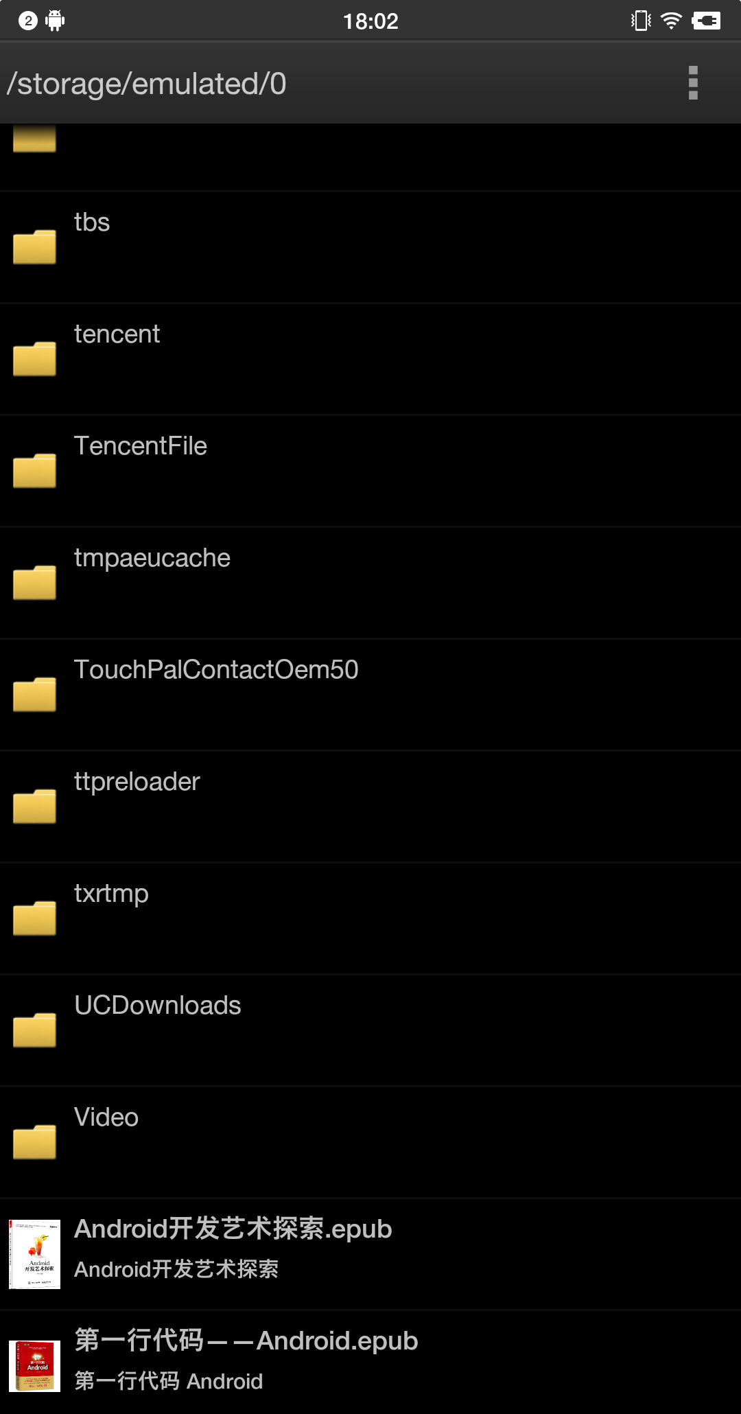 FBReader打开书柜,找到手机中存储的文件并将其打开