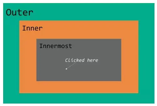 - 最内部的 div 处理程序将 hello innermost 打印到控制台。