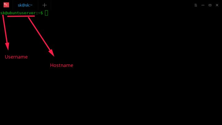 在上图这种默认显示形式当中,“sk” 是我的用户名,而 “ubuntuserver” 是我的主机名。