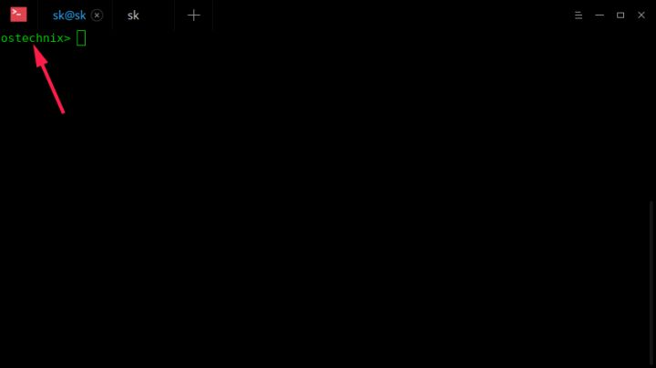 $ source ~/.bashrc你就可以看见 bash 命令提示符中出现刚才添加的 “ostechnix” 了。