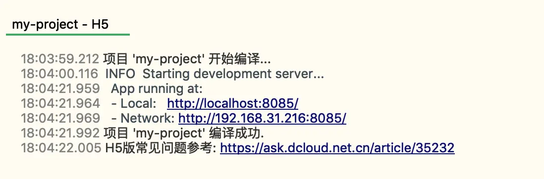运行成功后,控制台会输出H5网站访问地址,如下:
