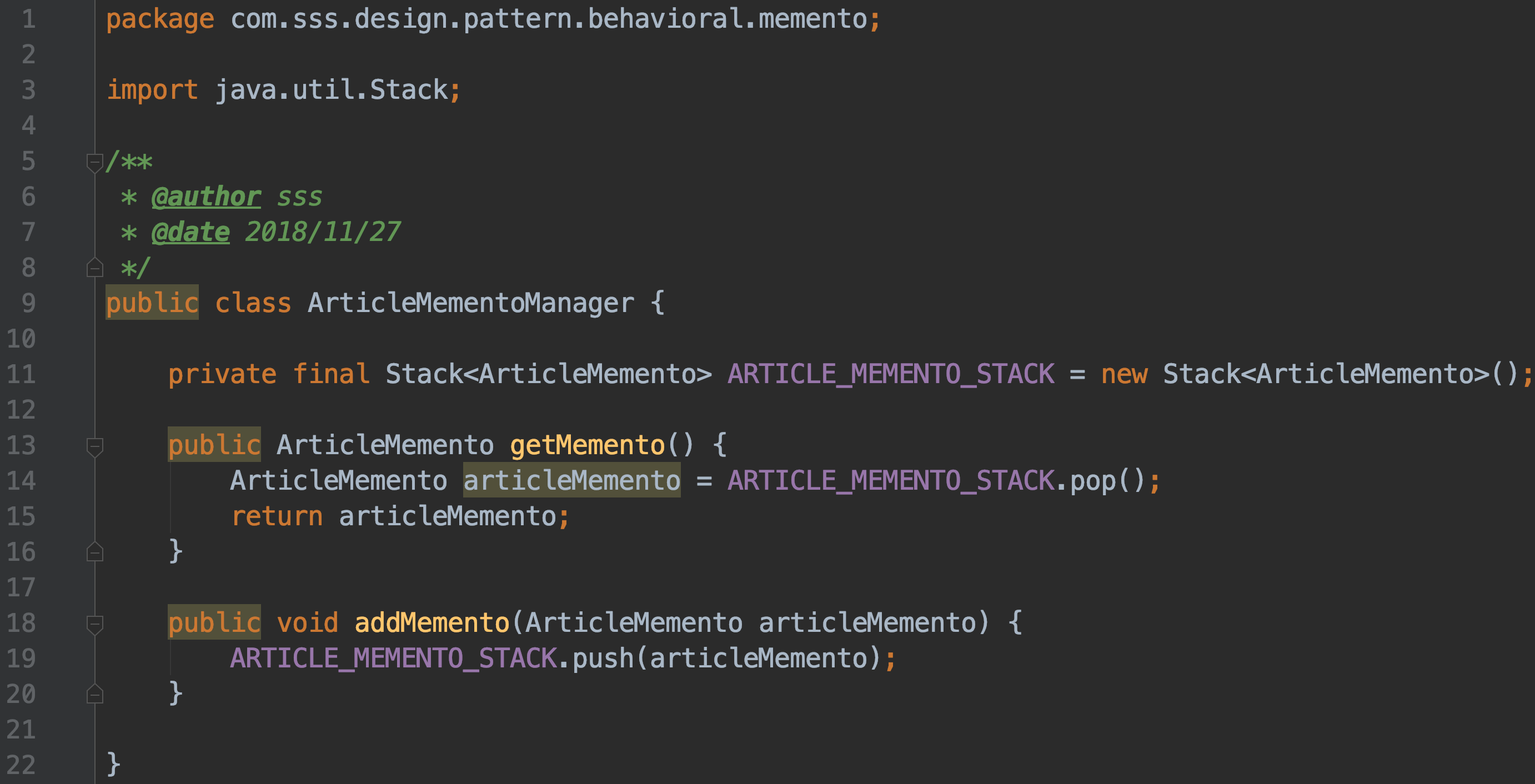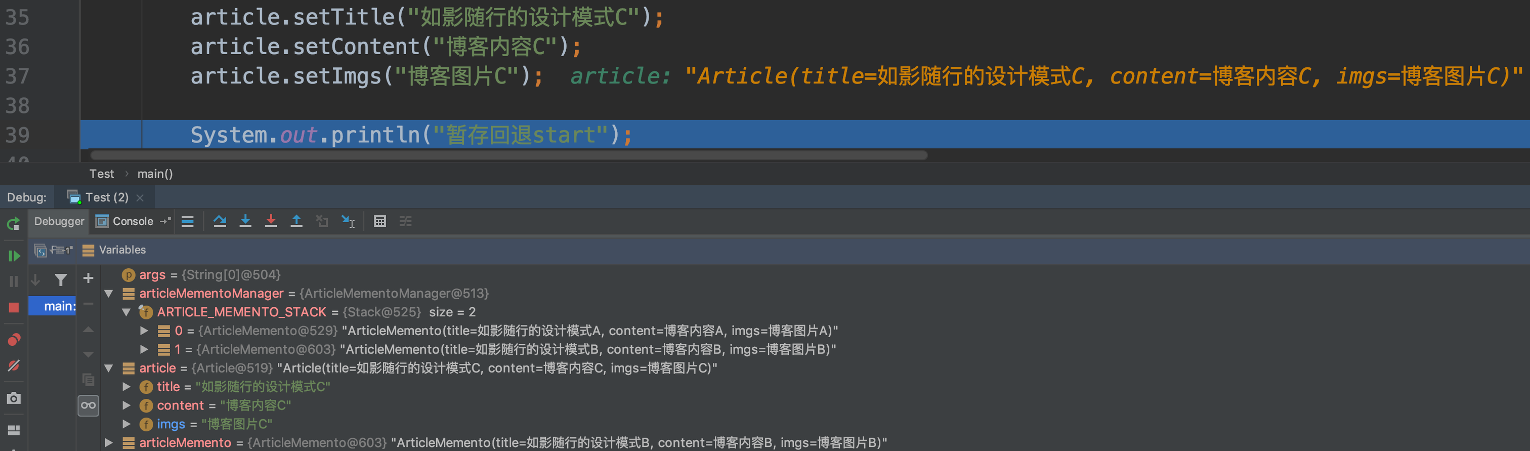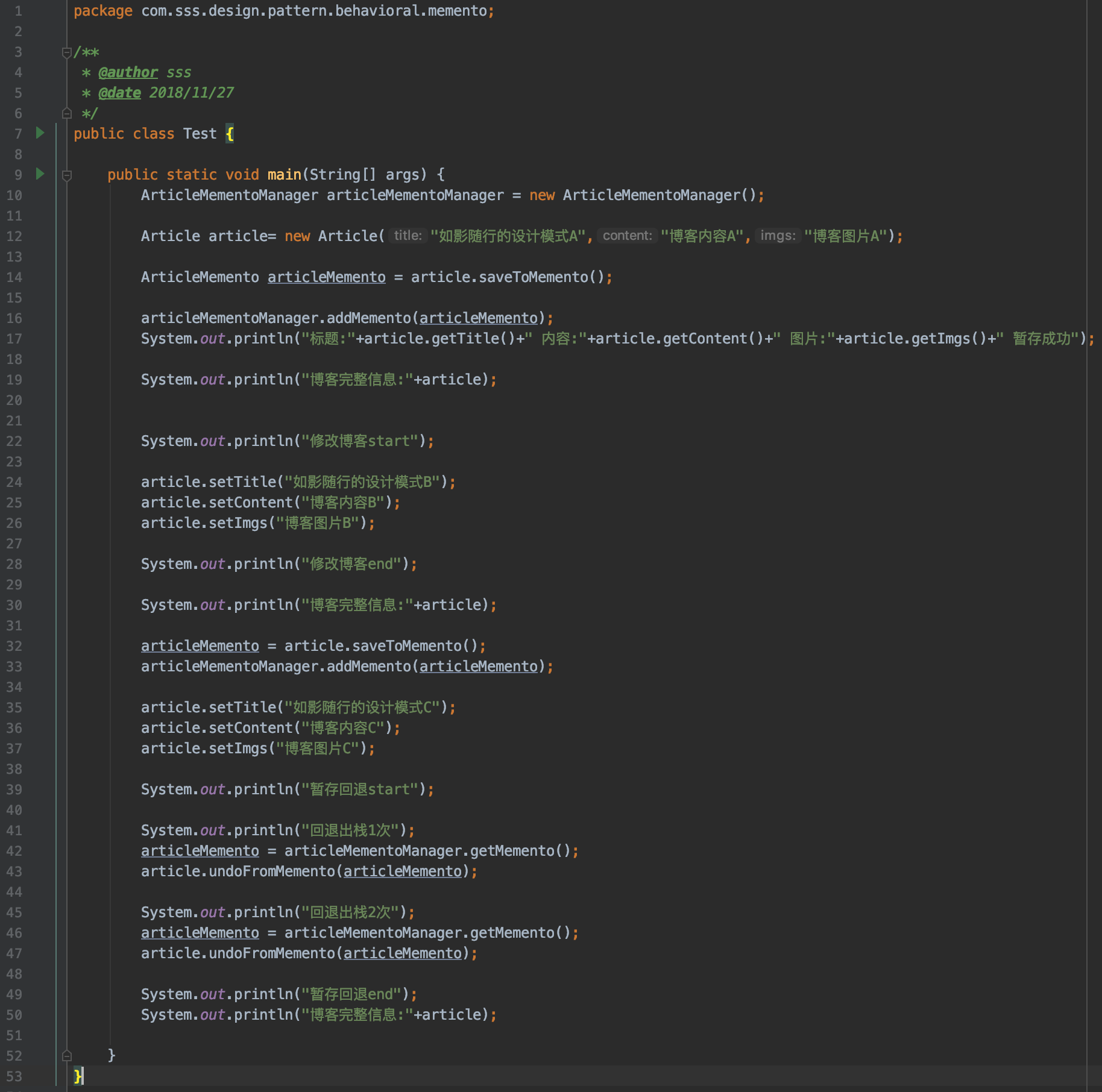 设计模式实战 - 备忘录模式 已注销 2018-11-27 191 阅读1分钟 源码 github.com/Wasabi1234/… 定义与类型 适用场景 优点 缺点 相关设计模式 状态模式 只是用类表示状态 实例表示状态,即存档为对象的每个实例 coding Article ArticleMemento ArticleMementoManager Test debug