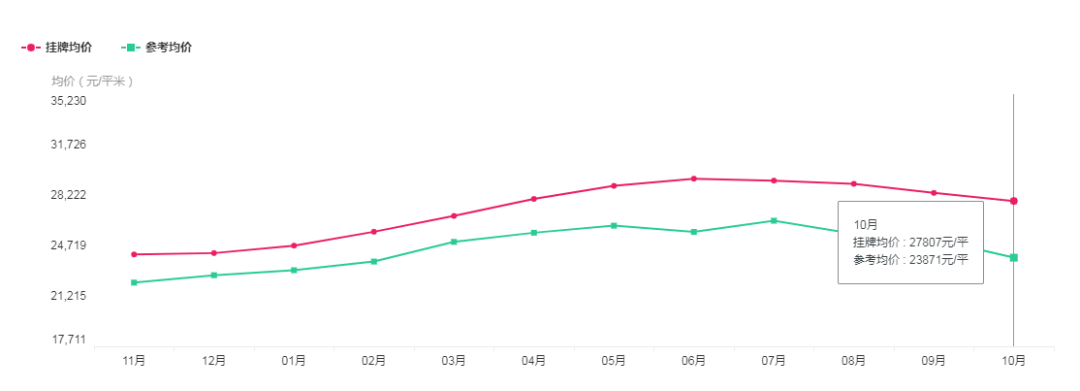 我们先来看一下链家提供的青岛市北的二手房价格(成交价)走势: