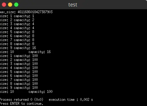 cout << "capacity: " << othervector.capacity() << endl;