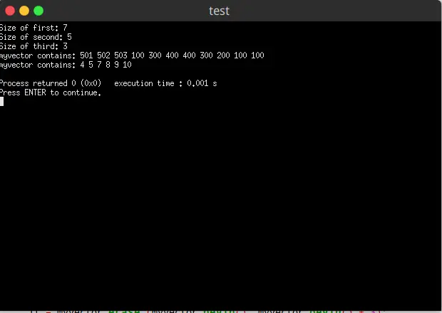 cout << "size: " << myvector.size() << '\t';