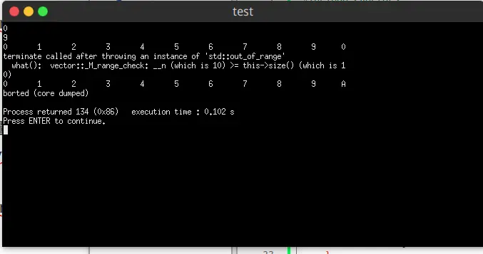 // 此处越界访问向量,会抛出一个 out_of_range 异常