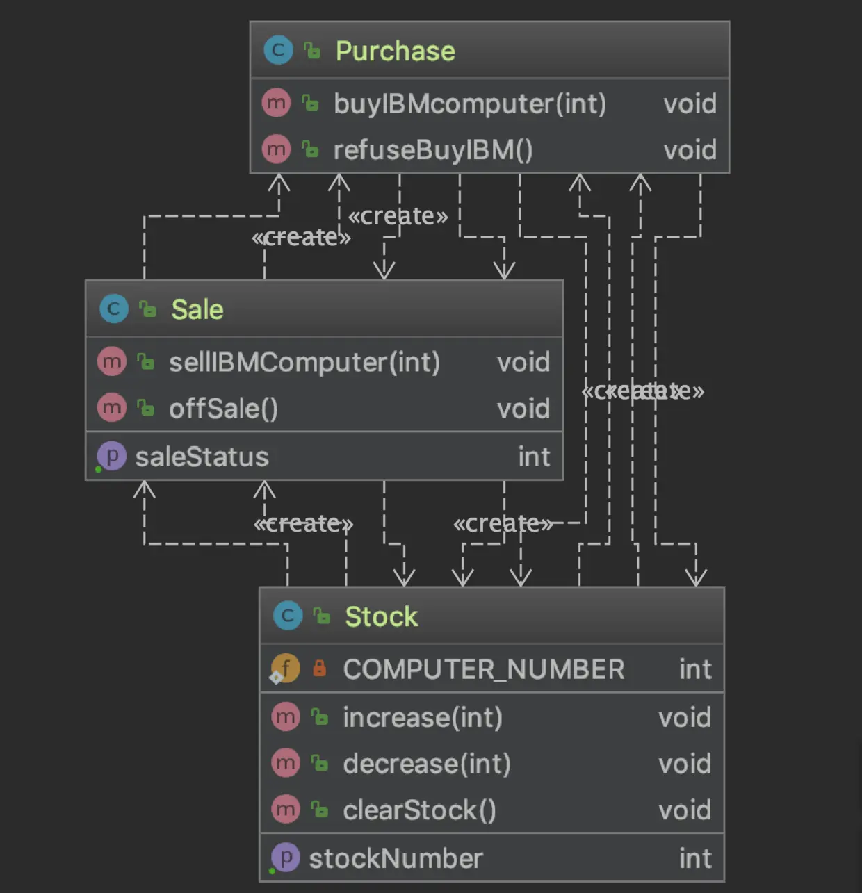 我们在场景类中模拟了三种人员的活动:采购人员采购电脑,销售人员销售电脑,库管员管理库存 运行结果