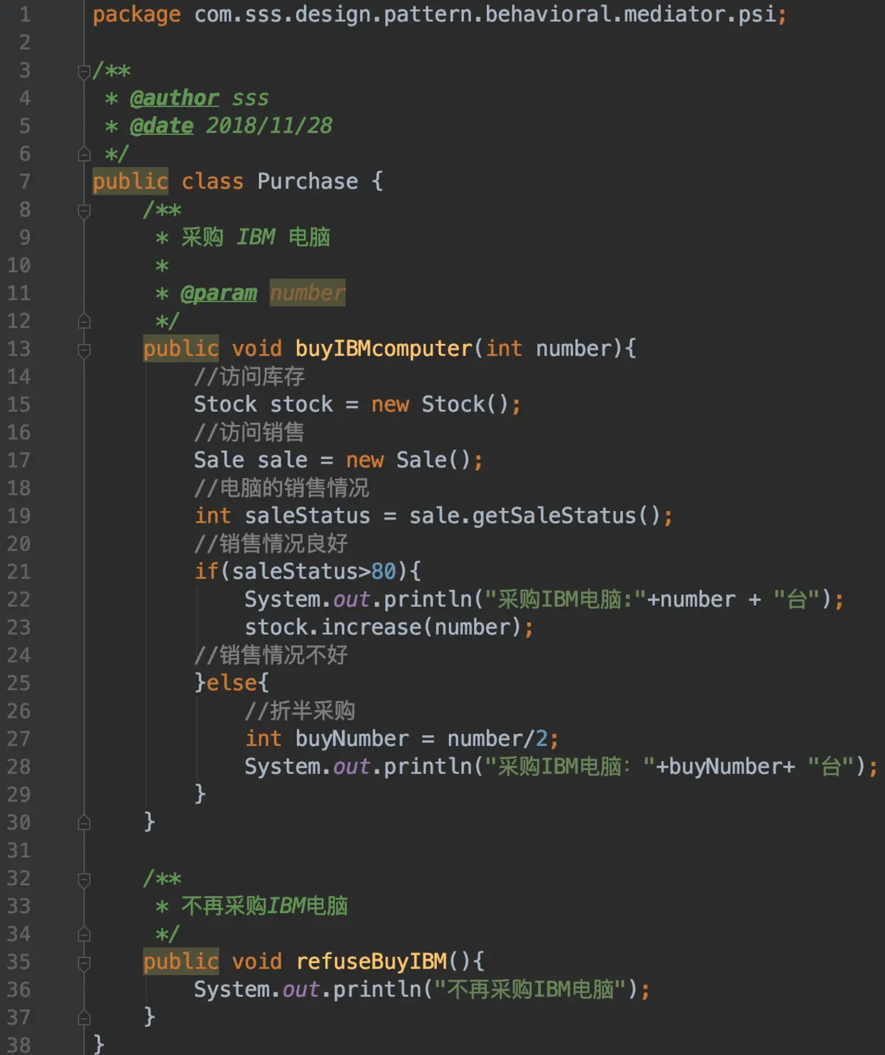 Purchase简化了很多,也清晰很多,处理自己的职责,与外界有关系的事件处理则交给了中介者来完成