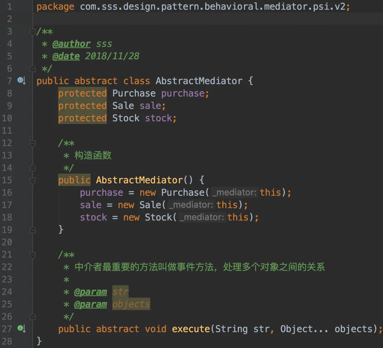 AbstractMediator的作用是实现中介者的抽象定义,定义了一个抽象方法execute