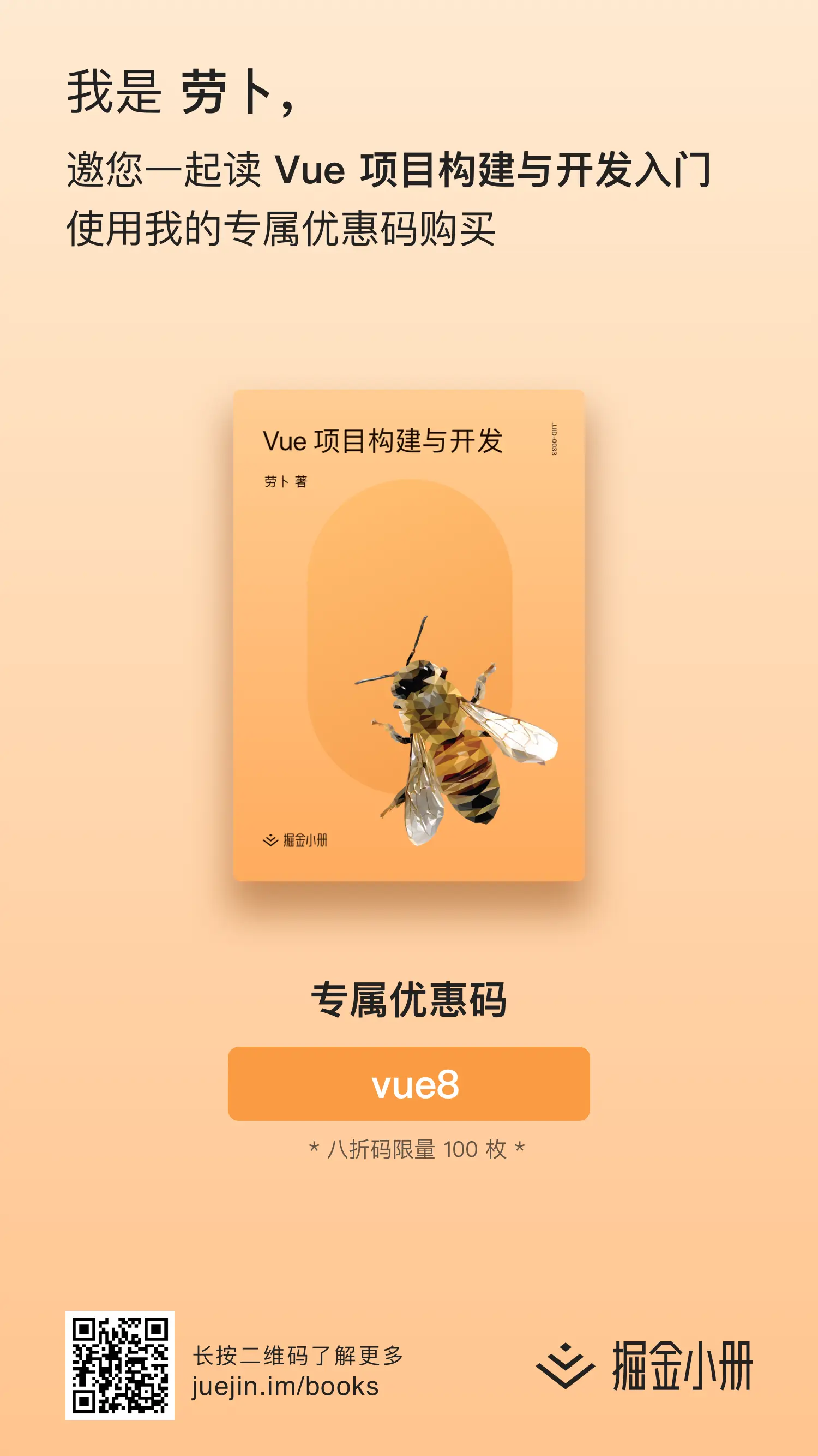 因为本小册是一本付费阅读的书籍,但是为了能让更多的人阅读本小册,小册在定价方面也给予了很大的优惠,同时使用下方优惠码进行购买可以再享受 8 折优惠: