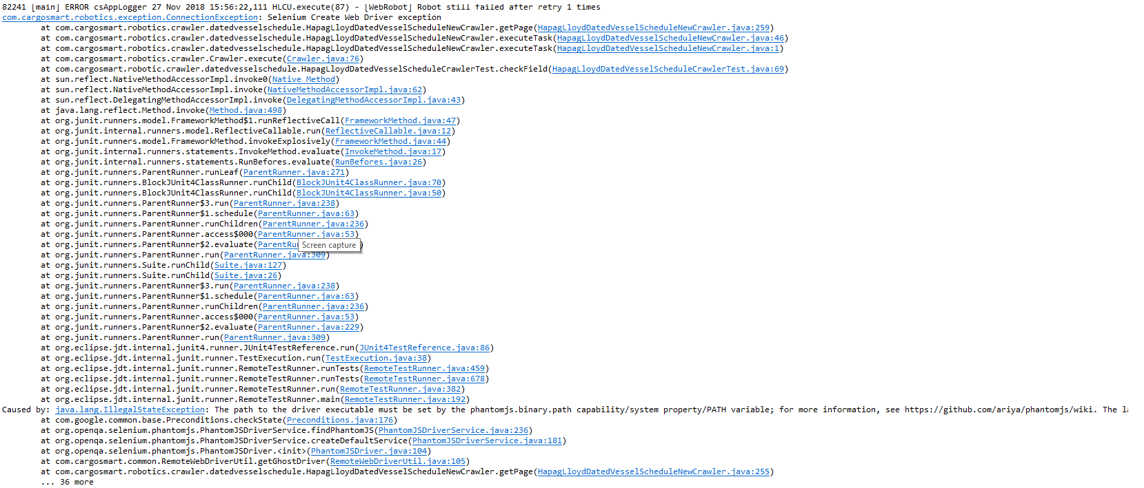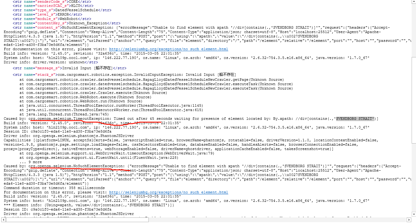 在stack里面去掉selenium的log,保留InvalidInput的log