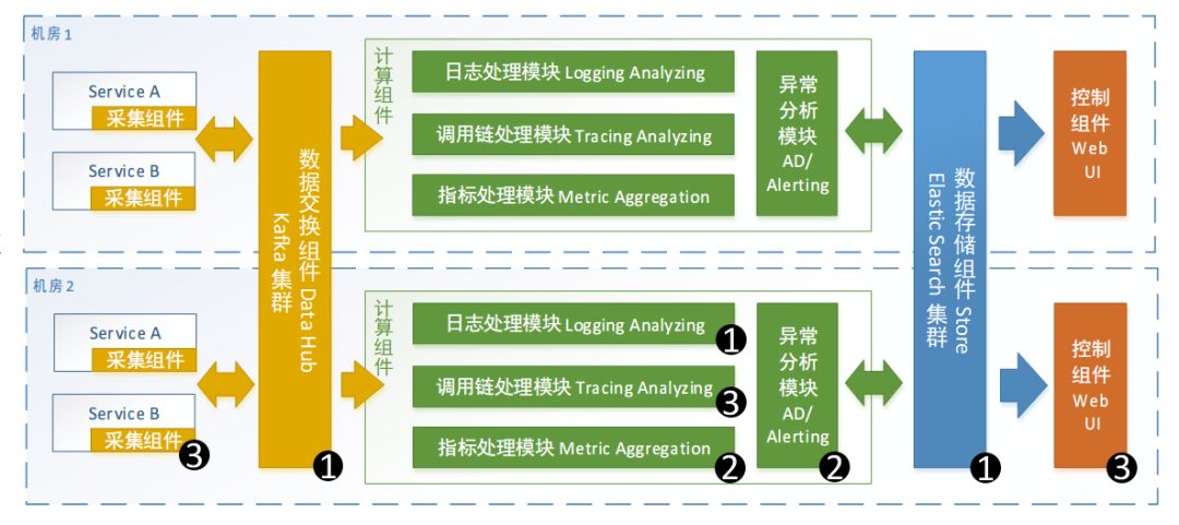 最后整个架构是演化而来的。2015 年的时候我们只做到了 Version 1.0 当中的组件 (编码为 1 的组件)。 在后续几年的演化中逐步形成了现在的架构,系统也由一个 ELK 型的日志系统演化为了一个完善的 APM 系统。