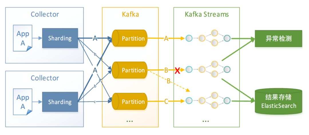 简单。Simple is powerful ,简洁架构让问题变的易于处理。系统一共只有 3 个组件,运行时额外依赖 Kafka 和 ElasticSearch 集群分别作为数据的 Hub 和 Store。原始数据由采集组件搜集并发送给 Hub,由 Hub 聚集后按照分区逻辑分发到对应的计算组件做实时处理或异常检测,处理结果再统一存储到存储组件中,最后由控制组件查询使用。