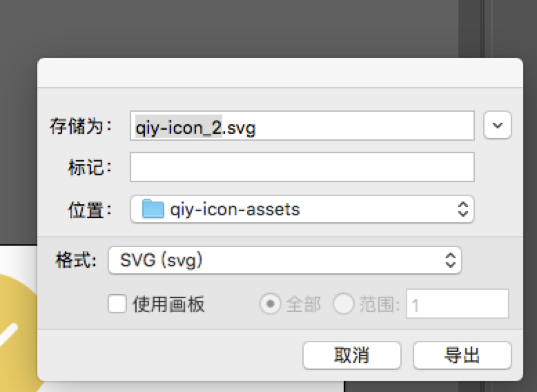 1、按照正常导出图片的方式导出后缀为png的雪碧图和单个icon,然后用AI打开该类文件,然后直接导出为svg后缀的图片即可