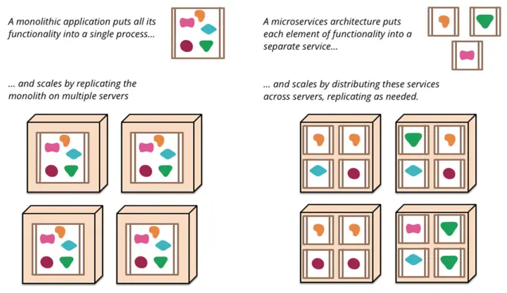 简单地说,微服务架构就是以业务域或业务功能为边界,将一个大而全的应用拆分为可以独立开发,独立部署,独立测试,独立运行的一组小的应用,并且使用轻量级,通用的机制在这组应用间进行通信。