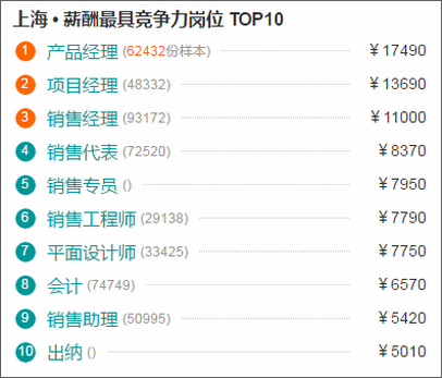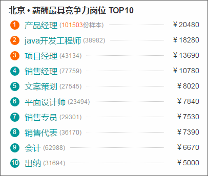 从上图(数据来源于职友集)可以看出,在北京,上海,深圳等一线城市中,产品经理成为了薪酬最具竞争力岗位第1名。