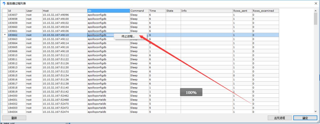 如果你使用的SQLyog,那么也有图形化的页面,在菜单栏-工具-显示-进程列表。在进程列表页面可以右键杀死进程。如下所示: