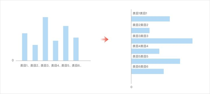 当轴标签太长时,虽然斜放可以避免重叠,但歪着头查看内容在浏览大屏的场景下对用户不是很友好,可以考虑把柱条横向放置,把标签置于柱条空隙之间。