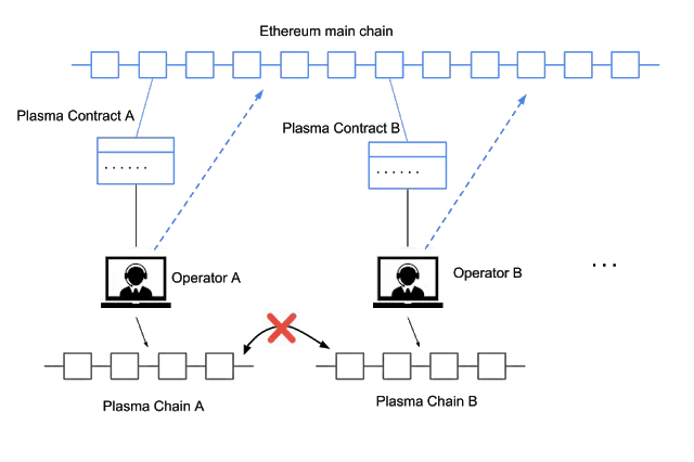 root),这样 Plasma chain 这边的块才算被 confirm。每个 Plasma chain 是独立的,所以不能跨链交易,必须先转回到主链。